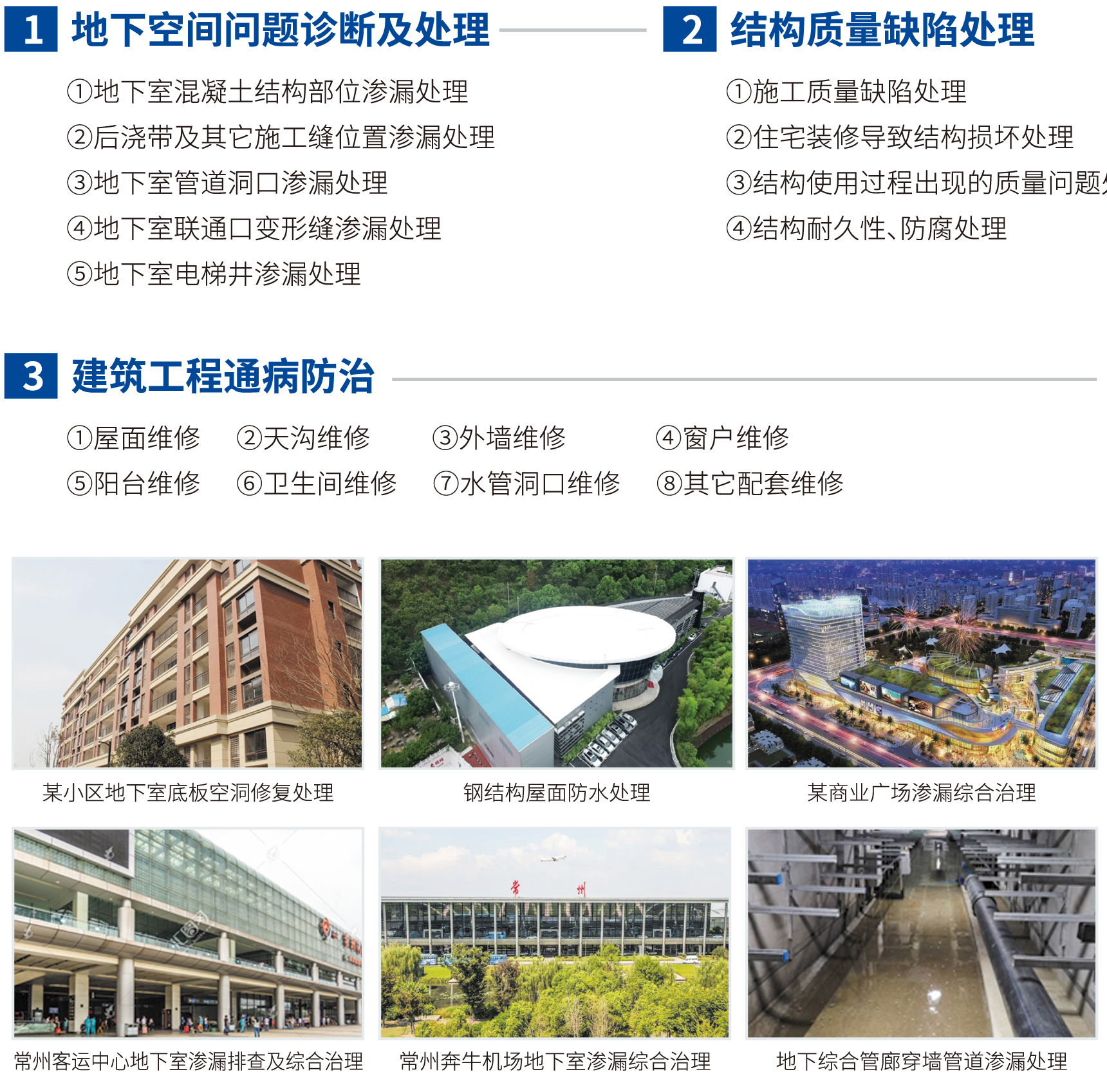住宅、商业小区、厂房内分布着供热、给排水、供电、供气、通讯、有线电视等企业的设备设施,每年都要对其进行维修、养护,对于常见的渗漏、结构缺陷、建筑工程通病等问题要对其进行维修、改造。近年来,公司致力于第三方维保服务,从鉴定、设计、预算估价到施工实施和后期的维护,全面、协调、统筹兼顾,获得一致好评。