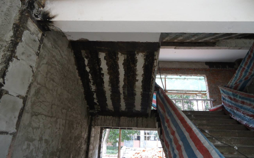 (3)粘贴碳纤维布加固(代替纵向钢筋或箍筋,可提高承载力、不增加刚度)