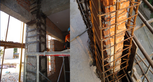 (5)外加构造柱(提高房屋延性和抗倒塌能力,提高局部易损墙段的承载力)