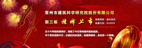 2015年10月30日,一个共同的梦想,在你我共同的见证之下变为现实,常州市建筑科学研究院股份有限公司(股票代码:834049)成功登陆“新三板”。这一历史性时刻,是对我公司多年深耕建筑行业,稳健发展的充分肯定,也标志着公司进入了一个新的发展阶段,为进一步做大做强我公司研、产、销一体化方面开辟了新途径。在“新三板”的成功挂牌,彰显了公司的雄厚实力、发展潜力和高瞻远瞩的魄力。