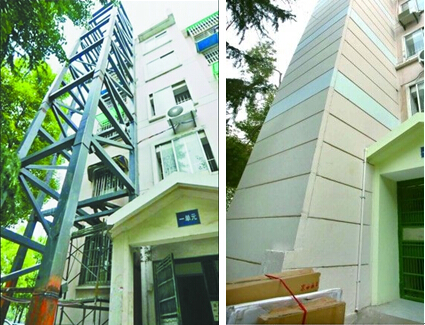 图1多层加电梯施工中 图2施工结束后