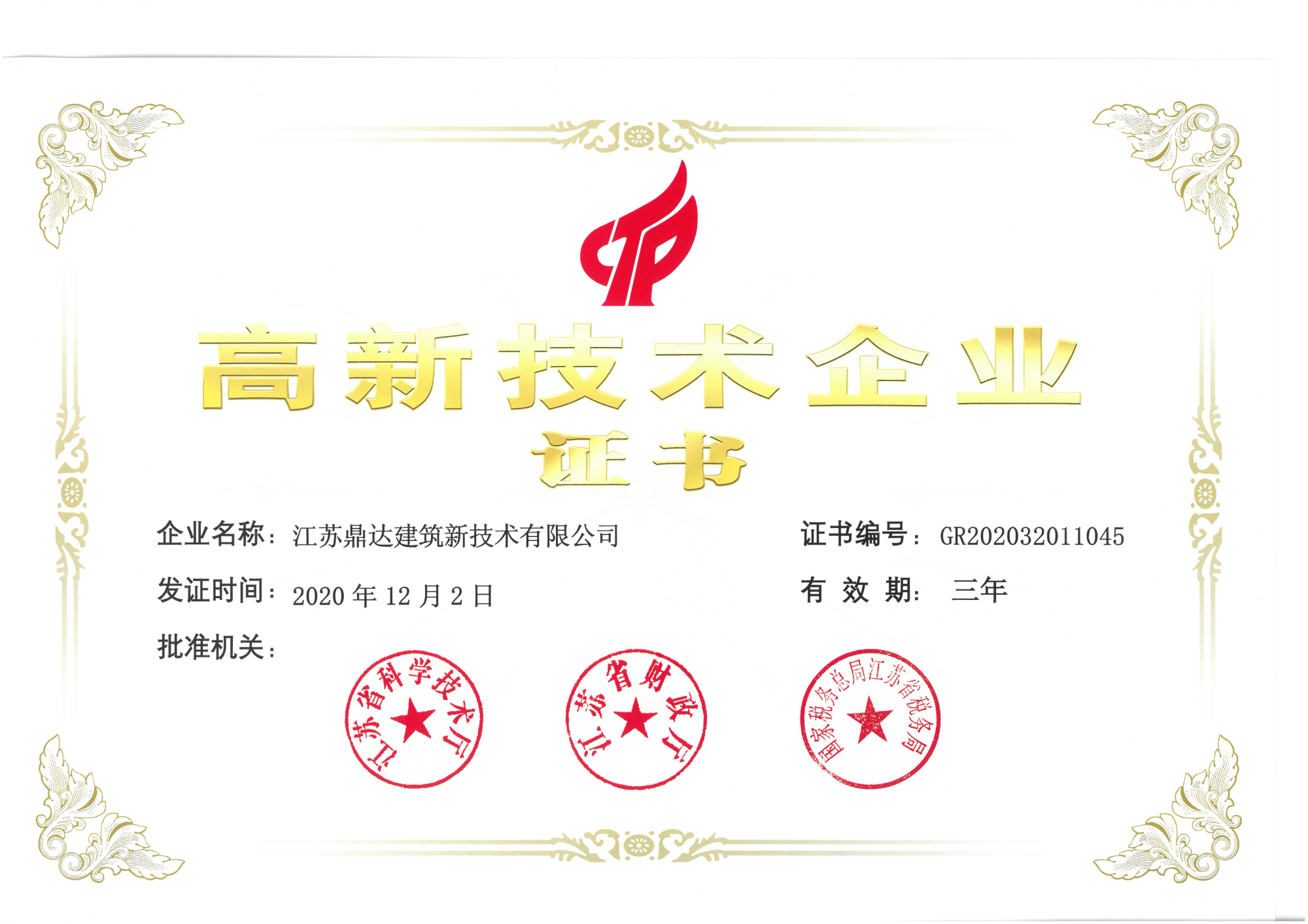 【高新技术企业证书】