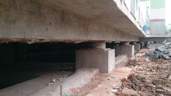 针对该工程的上述情况,采用的加固措施有:框架部分采用设置框架柱及柱下基础梁,框架梁下部钢筋不足处粘贴碳纤维,挑梁内部设置锚固梁,楼梯间柱全高箍筋加密、梯梁箍筋加密;砖混部分采用隔震措施提高建筑物抗震能力,在基础上部安装隔震垫,房屋四周设置挡土墙,挡土墙与建筑物之间设置隔震沟,以保证建筑物的抗震能力。经抗震加固后该建筑能满足乙类建筑继续使用40年的要求。