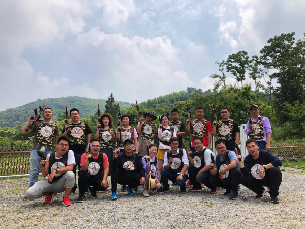 6月1日早上大家按照约定的时间前往拓展基地,历时一个半小时到达了溧阳戴埠镇,当车行驶在彩虹路,穿过片片绿荫到达风景如画的松岭部落时,看着那碧绿的山、清澈的溪水缠流,让我们享受到生态大自然青山绿水的无限风光,顿时生活与工作的压力不翼而飞。