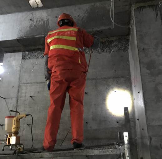 上述空隙的存在会影响剪力墙的承载力效果,而钢格构柱承载力无法满足上部结构的继续浇筑,严重影响工程进度,我公司临危受命,对剪力墙上部空隙进行加固处理。