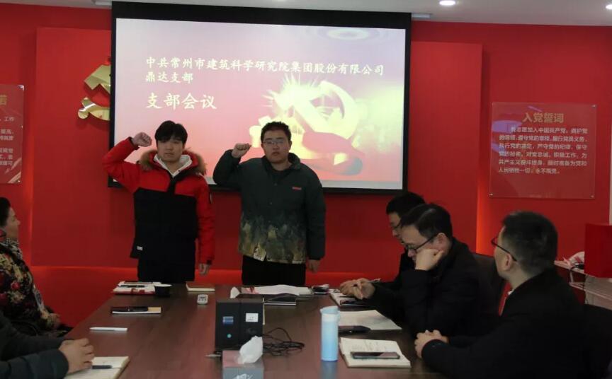 2020年12月16日下午,中共常州市建筑科学研究院集团股份有限公司鼎达新技术支部会议在院部党群活动中心顺利召开,会议意在讨论预备党员卢昌顺、李保宽同志的转正事宜,以及确定朱斌、秦伟杰同志为入党积极份子的事宜。会议由鼎达新技术支部书记王建莹主持,集团党总支书记宋文英出席会议,14名鼎达新技术党员参加会议。
