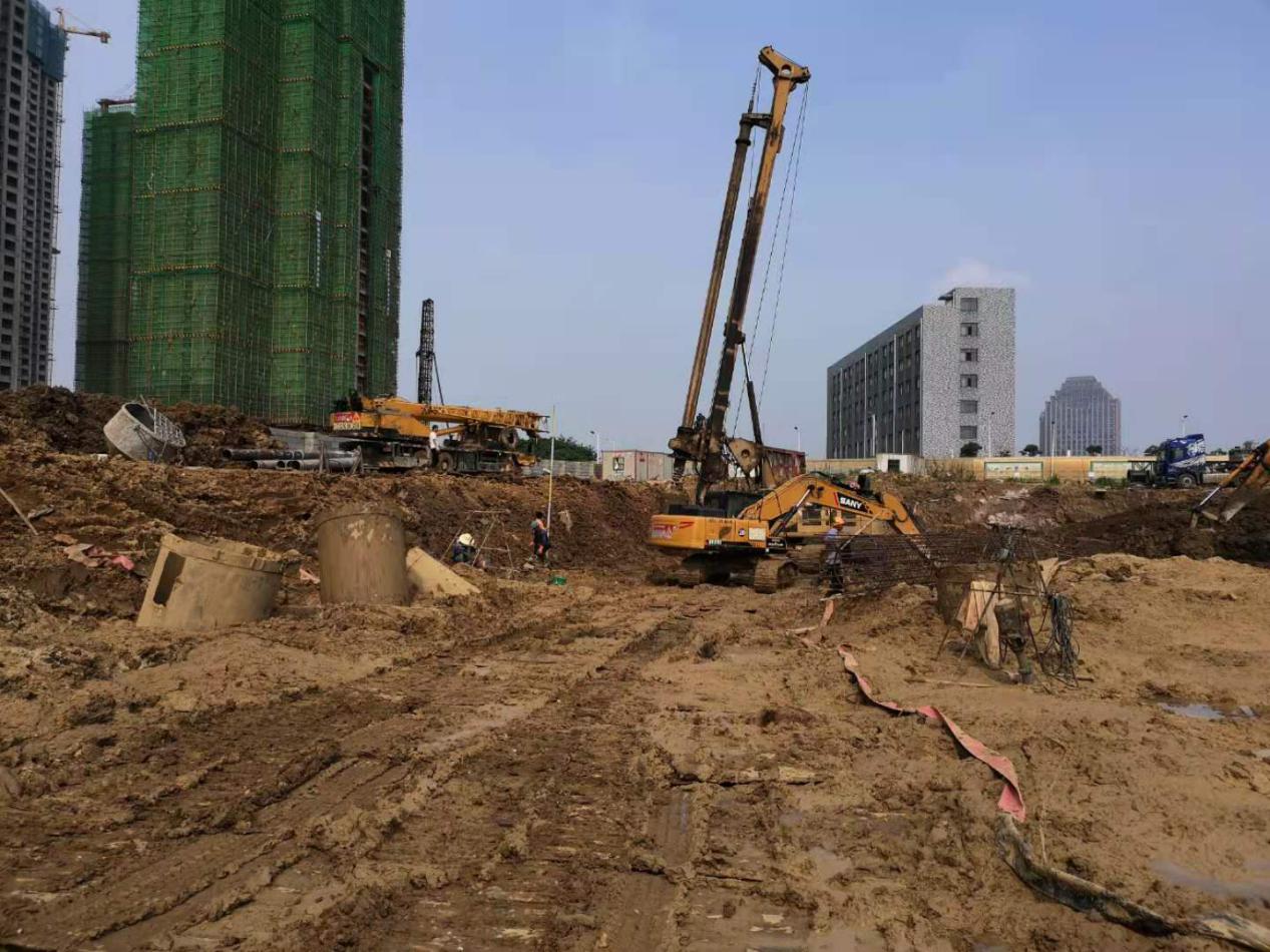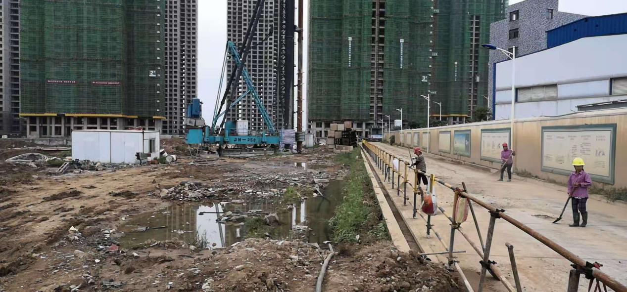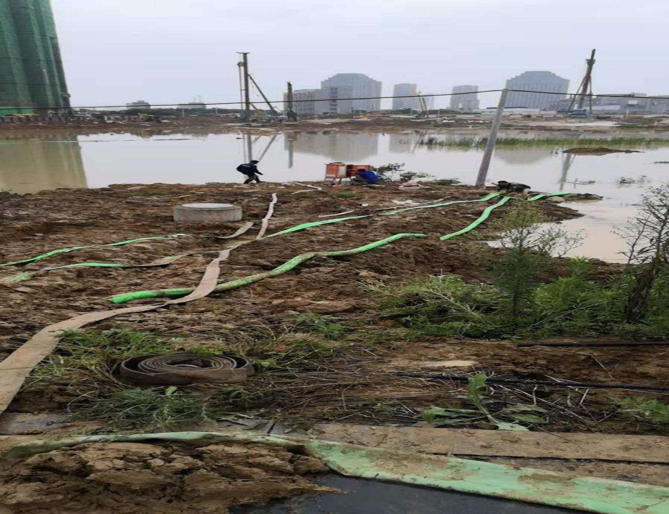 6月正是江西南昌进入雨季的时候,一场暴雨即将来袭,我司为了应对大雨的突发情况,组织建立抢险小组,采购多台大功率水泵和沙袋。6月28日晚的暴雨落下,项目部组织各施工队伍应对暴雨,挖机筑坝,开沟排水,水泵抽水。