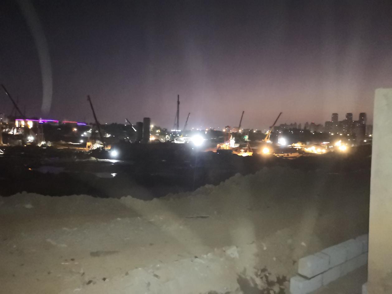由于暴雨影响,无法按照原定工期完工,项目部与各施工队沟通商讨,进行24小时抢工高强度抢工,保证原定工期完工;每天,工地外已经是夜深人静,现场确是如火如荼的施工。