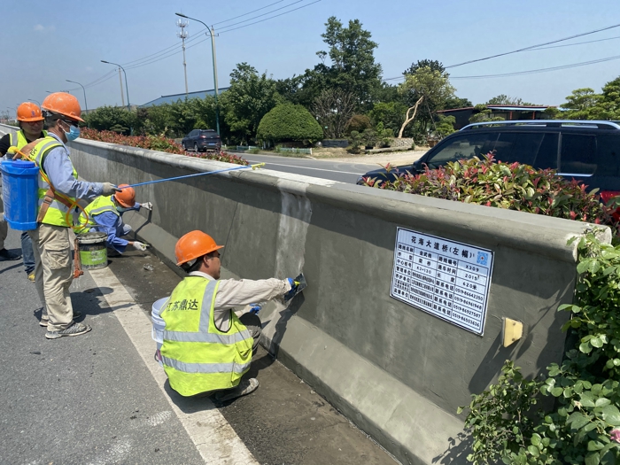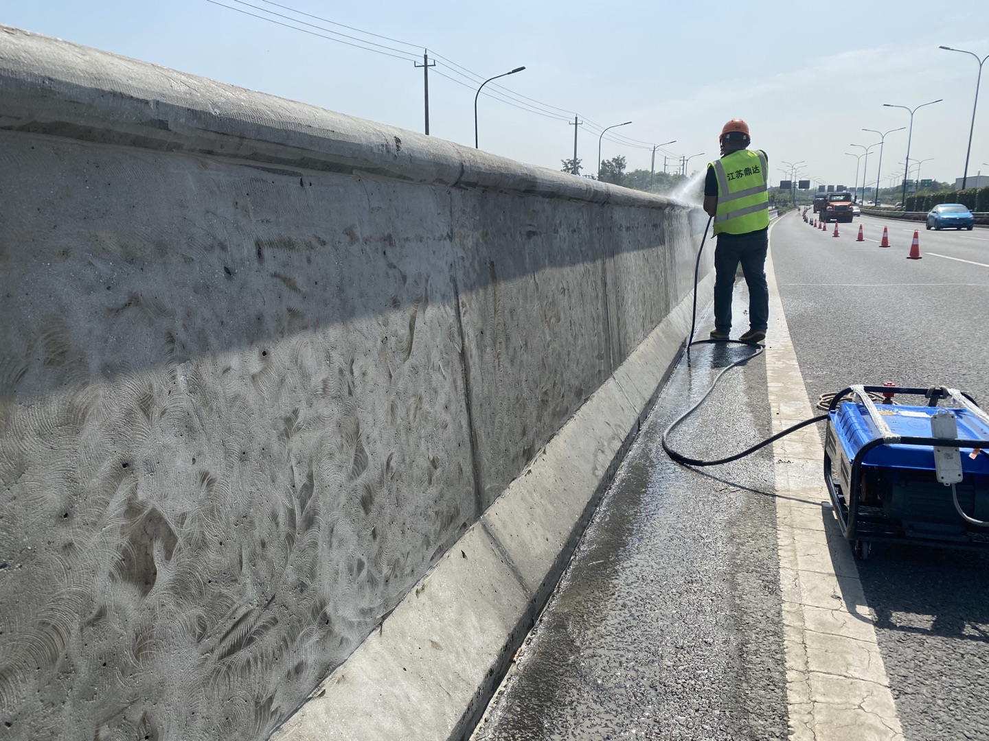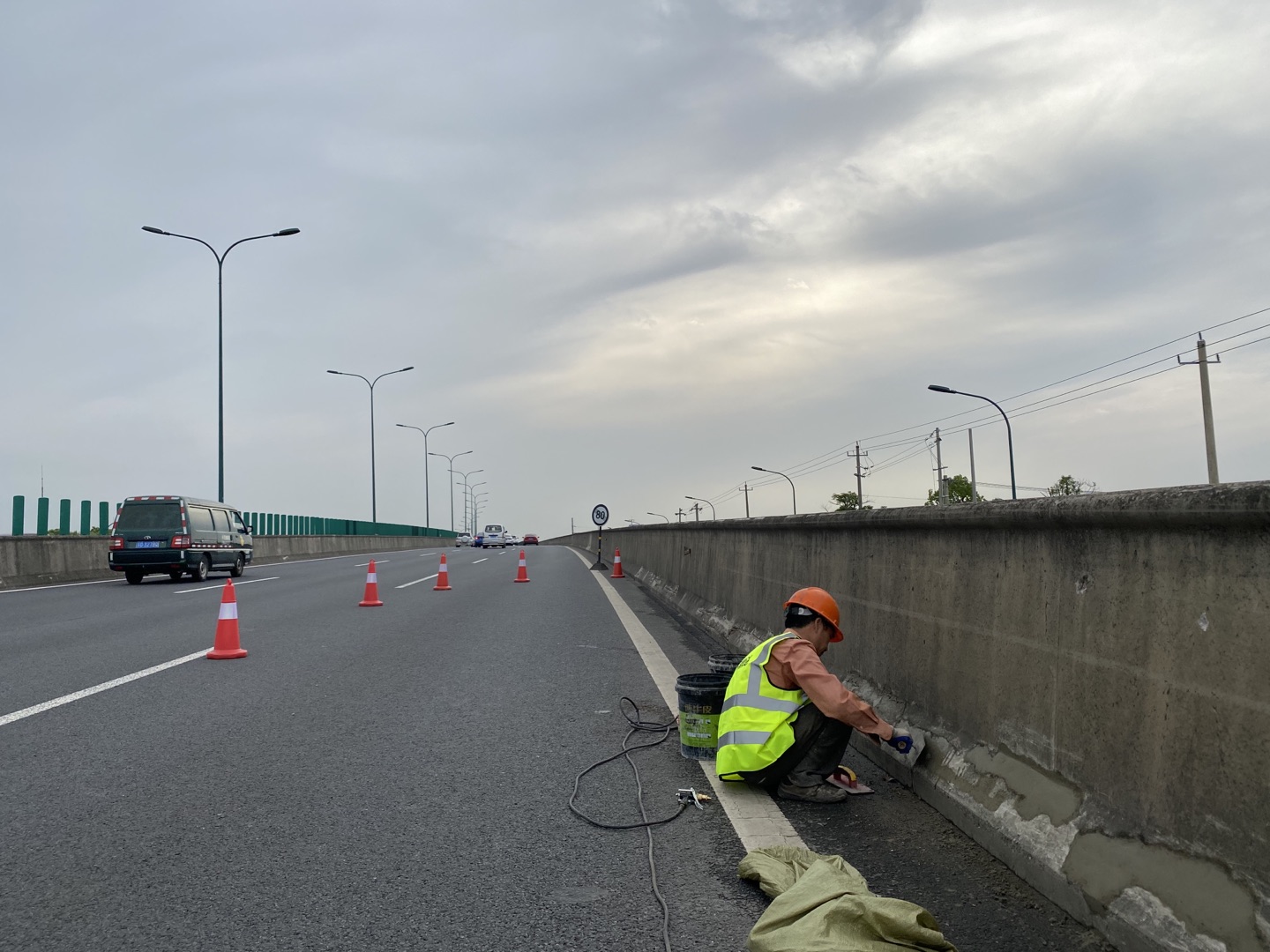 近日,我公司在所承接的武进区金武线花海大道桥防撞栏预防性养护中,使用柔韧型水泥基渗透结晶防护材料延长混凝土使用寿命,该防碳化技术在江苏省省交通领域中尚属首次应用。
