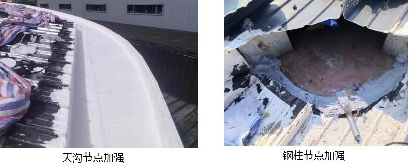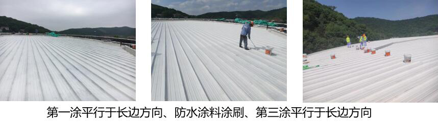 对整体屋面采用HCA-108金属屋面丙烯酸高弹性防水涂料进行喷涂或刮涂处理三遍,保证屋面防水层的整体性及附着性。