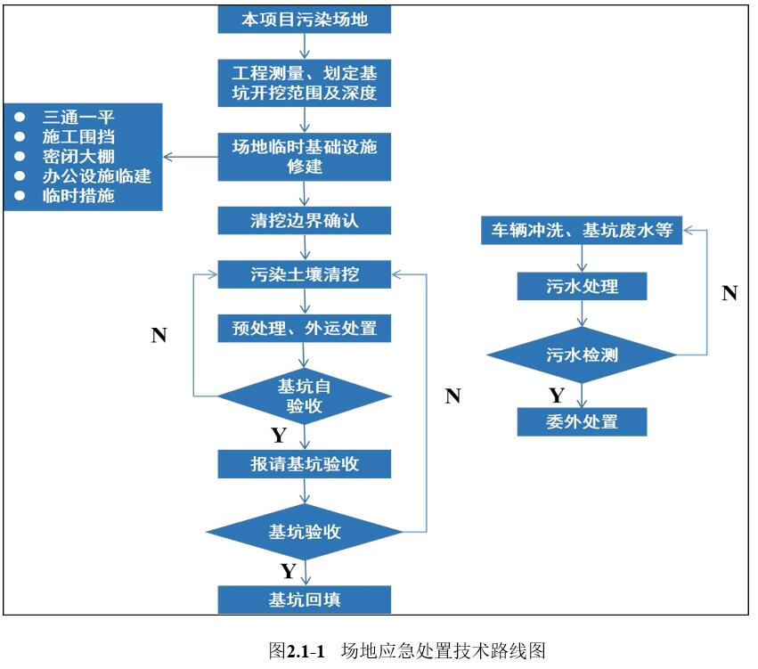 3、污染土壤清挖外运时产生的废气通过活性炭吸附处理。本项目场地应急处置的总体技术路线如图 2.1-1 所示。