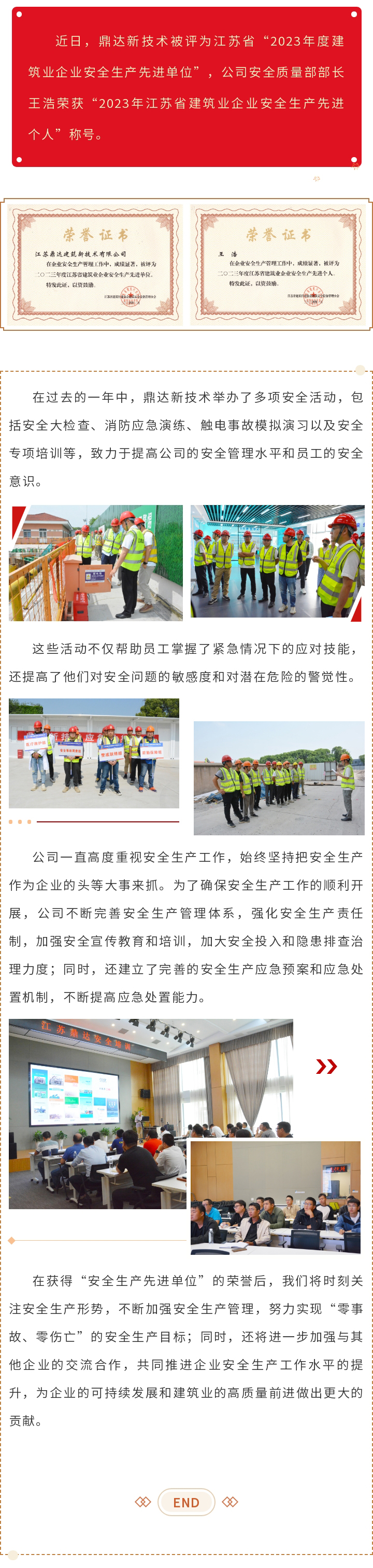 公司荣获“2023年度建筑业企业安全生产先进单位”