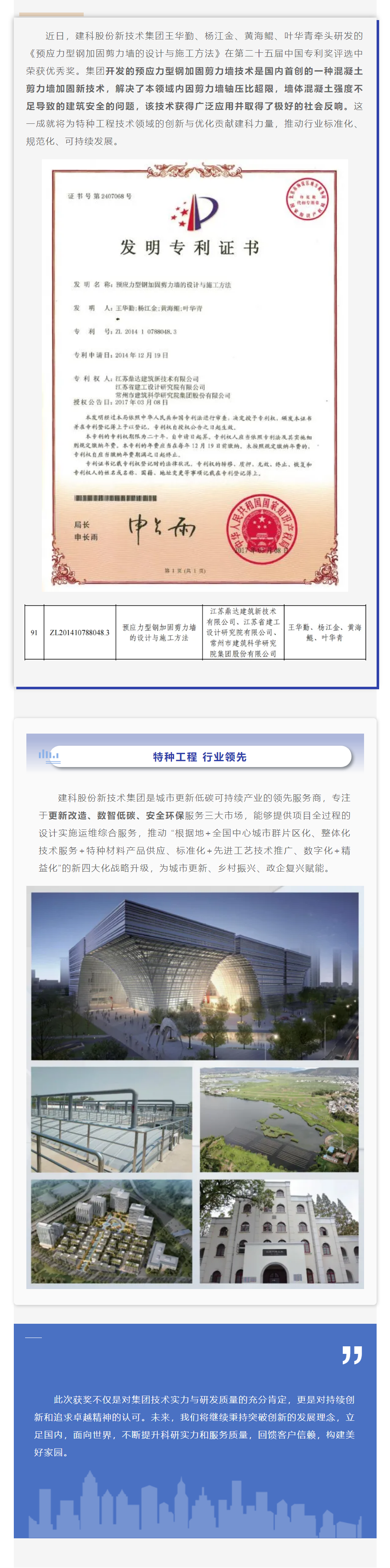 建科股份新技术集团荣获第二十五届中国专利优秀奖