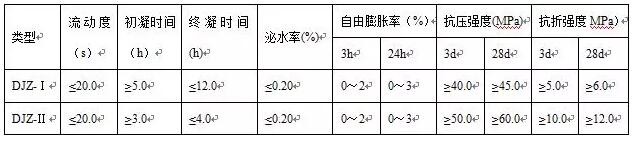 地聚合物材料具有自硬性好、粘结力强的性能。西安长大公路有限公司研发了出DJZ-Ⅰ型和DJZ-Ⅱ型两种地聚合物注浆料,DJZ-Ⅰ型适合交通量一般、重载比例不大的国省道公路;DJZ-Ⅱ型适合高速公路、交通量大或重载交通。其中DJZ-Ⅰ型比DJZ-Ⅱ型造价相对低,但二者施工配合比均为:地聚合物材料:水=1:0.34(重量比),地聚合物混合料主要技术指标应符合表2。
